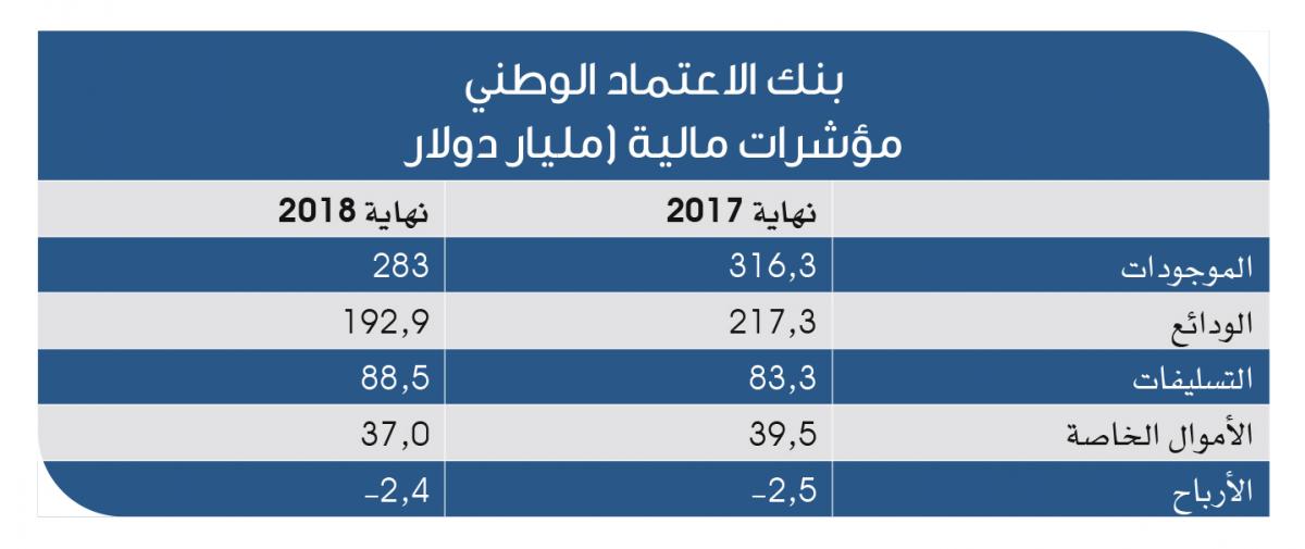 وكان البنك ووفقاً لأرقام نهاية العام 2018 غير المدققة شهد تراجعاً في بنود الميزانية مقارنة مع العام 2017، ولاسيّما لجهة نتائجه المالية، حيث سجل خسارة بقيمة 2.4 مليار ليرة في مقابل خسارة مماثلة تحققت في العام 2017.