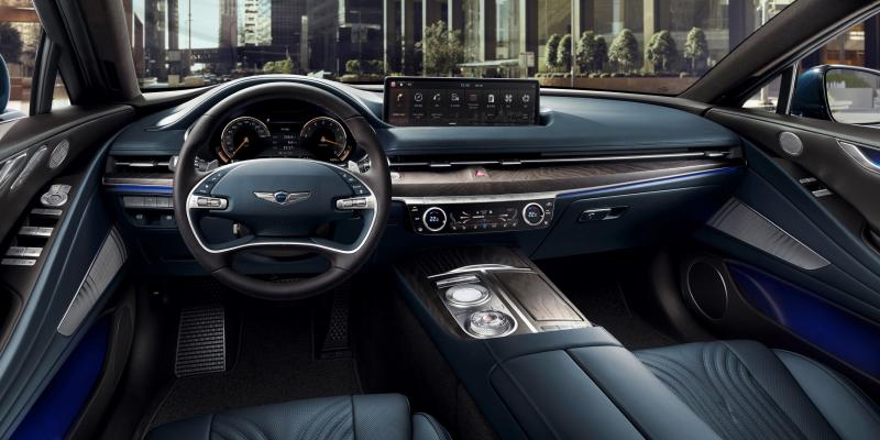 جهزت "جينيسيس" بتقنيات حديثة ومتطورة لراحة السائق والركاب، مثل وحدة التحكم باللمس في لوحة التحكم المركزية للتحكم في أنظمة المعلومات والترفيه المختلفة بسهولة، نظام التعرف على خط اليد، لوحة ثلاثية الأبعاد قياس 12.3 بوصة تتعرف على عيني السائق وتوفر معلومات القيادة المختلفة ويمكن أيضاً تحويلها إلى شاشات ثنائية الأبعاد حسب تفضيل السائق، لوحة التحكم بالمناخ التي تعمل باللمس، شاشة تعمل باللمس قياس 14.5 بوصة.