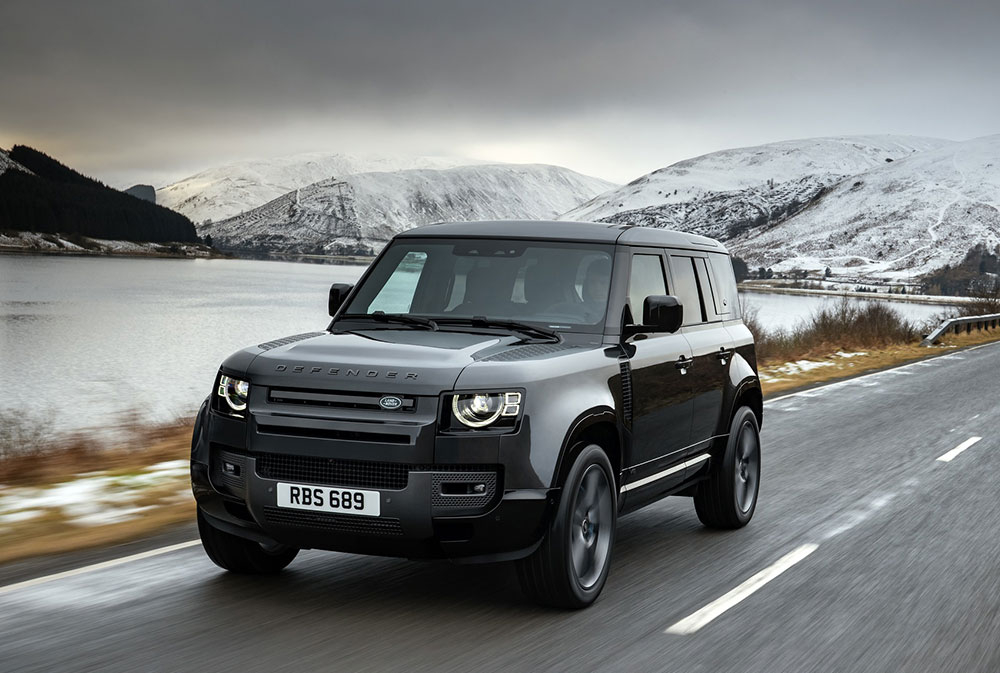 أطلقت "لاند روڤر" سيارة "ديفندر V8" مزودة بمحرك ثُماني الأسطوانات، سعة 5 لترات مع سوبر شارجر، بقوة 525 حصاناً و 625 نيوتن متر من عزم الدوران. وتم تحسين ضبط نظام التعليق وناقل الحركة، لتكون سيارة "ديفندر" الأكثر سرعة وديناميكية حتى الآن. ويضاف المحرك الجديد إلى مجموعة من أحدث محركات "إنجينيوم" (Ingenium) شديدة الكفاءة بالبنزين والديزل، ومجموعات نقل الحركة الهجينة المتطورة القابلة للشحن من لاند روڤر. تنطلق "ديفندر V8" من صفر إلى 100 كم/ساعة خلال 5.2 ثوان، وتصل سرعتها القصوى إلى 240 كم/ ساعة. وتم تخفيض استهلاك الوقود بما يصل إلى 14.5 ل/100 كم وانبعاثات ثاني أكسيد الكربون بما يصل إلى 327 غ/كم.