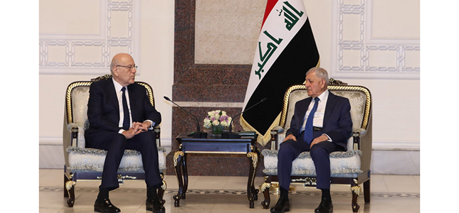 من جهته، ثمن الرئيس ميقاتي “موقف رئيس الجمهورية العراقية خلال مؤتمر القمة الأخير في البحرين الداعم للبنان”، موضحًا أن “ما يربط البلدين الشقيقين هو أكثر مما يربط لبنان بأي دولة أخرى”.