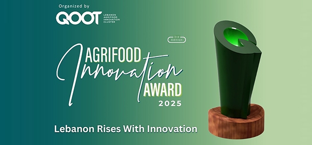 أعلن تجمّع "QOOT"، وهو تجمّع الابتكار للصناعات الزراعية والغذائية في لبنان، عن إطلاق النسخة الثالثة من جائزة الابتكار في الصناعات الزراعية والغذائية (AFIA 2025)، المحطّة الوطنية الرائدة المخصصة لتسليط الضوء على المنتجات المبتكرة ولتكريم المنتجين المبتكرين في هذا القطاع الحيوي.
