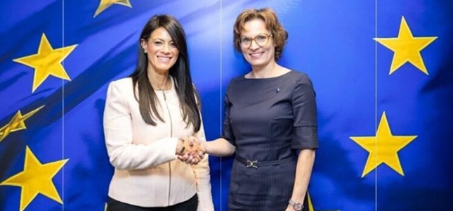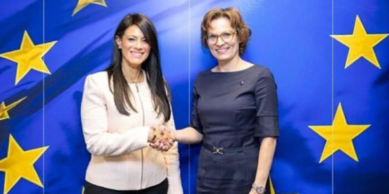 التقت وزيرة التخطيط والتنمية الاقتصادية والتعاون الدولي في مصر، رانيا المشاط ، مفوضة الاتحاد الأوروبي للبيئة ومرونة قطاع المياه والاقتصاد الدائري التنافسي جيسيكا روسوال، ، بحضور السفير أحمد أبو زيد، سفير مصر لدى بلجيكا ولوكسمبورج والاتحاد الأوروبى وحلف الناتو، وذلك خلال مشاركتها بالنسخة الثانية من منتدى «البوابة العالمية»، بالعاصمة البلجيكية بروكسل.