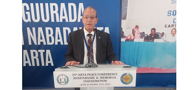 وخلال كلمته، نيابة عن معالي الأمين العام لجامعة الدول العربية، أكد السفير لعجوزي أن الحضور العربي في هذه الفعالية يترجم التزام الجامعة الراسخ بدعم مبادرات السلام والتعاون الإقليمي، تقديراً للدور الفاعل الذي تضطلع به جمهورية جيبوتي في دعم قضايا الأمة العربية والإفريقية.