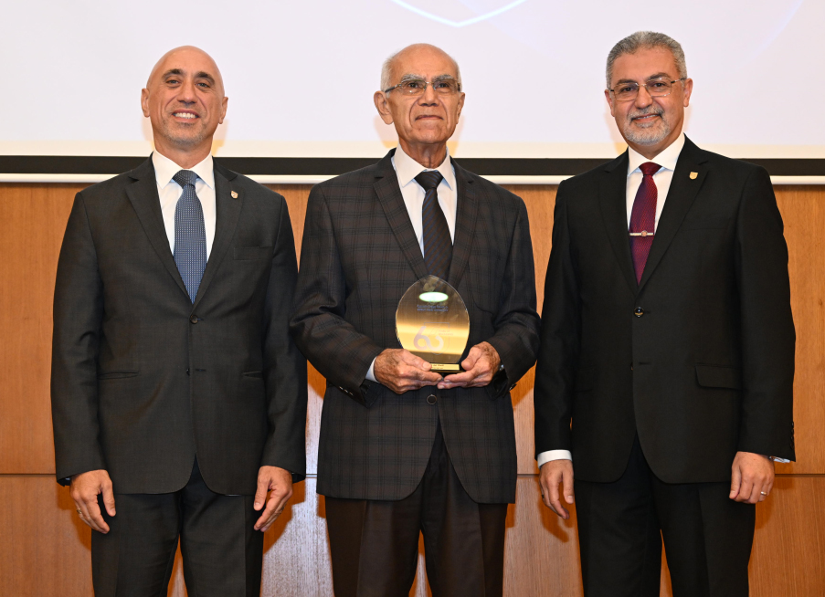 وفي الختام تم توزيع دروع الجامعة التذكارية للمكرمين في الحفل.