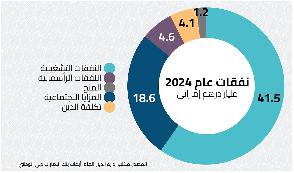تضمنت الميزانية المعلنة لعام 2026 زيادة ملحوظة في الإنفاق المخطط له بنسبة 15.4 في المئة ليصل الى 99.5 مليار درهم مقارنة مع 86.2 مليار في عام 2025. في حين قدرت الإيرادات بنحو 107.7 مليار، بما فيها 5 مليارات درهم كاحتياطي عام، ما يفترض تحقيق فائض بنحو 8.2 مليارات درهم إماراتي، أي بنسبة 1.2 في المئة من الناتج المحلي الإجمالي المقدر للعام المقبل وفق أبحاث بنك الامارات دبي الوطني. كما تفترض الارقام المعلنة تحقيق فائض قدره 26.5 مليار درهم على مدى الثلاث سنوات الممتدة بين 2026 و 2028.