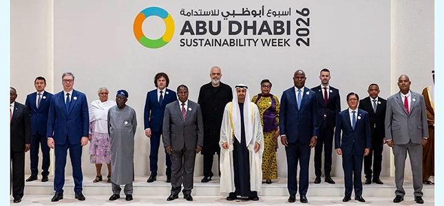 افتتح رئيس دولة الإمارات الشيخ محمد بن زايد الجلسة الأولى من فعاليات قمة "أسبوع أبوظبي للاستدامة 2026"، والتي تستمر يومَين في مركز أبوظبي الوطني للمعارض "أدنيك"، باعتبارها الحدث الرئيسي ضمن "الأسبوع"، وذلك بمشاركة قادة دول ورؤساء وزراء ومسؤولين حكوميين إلى جانب قادة أعمال ومستثمرين ومبتكرين.