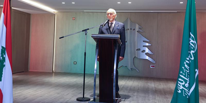 لا بد لنا وفي هذه المناسبة من تسجيل أسمى آيات الشكر والتقدير للمملكة العربية السعودية قيادة وحكومة وشعبًا على احتضانها الجالية اللبنانية بكل فئاتها بل وعلى احتضان لبنان سياسيًا واقتصاديًا والوقوف إلى جانبه في كل المراحل والمنعطفات.