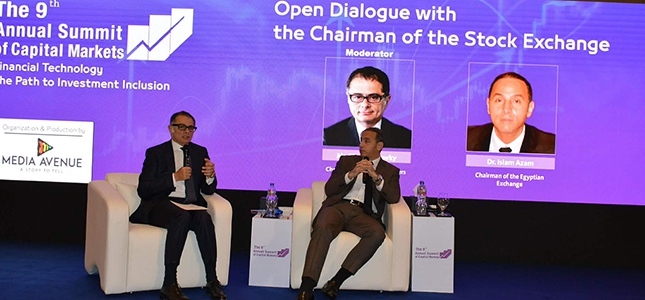 شارك رئيس البورصة المصرية د. إسلام عزام، في فعاليات القمة السنوية التاسعة لأسواق المال، التي تنظمها شركة «ميديا أفنيو» تحت عنوان «التكنولوجيا المالية: الطريق إلى الشمول الاستثماري»، وذلك برعاية وزارتي المالية، والتخطيط والتعاون الدولي، والبورصة المصرية، وبمشاركة كل من معالي أحمد كجوك وزير المالية، ومعالي د. محمد فريد رئيس الهيئة العامة للرقابة المالية.