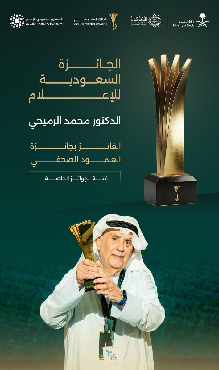 فاز الكاتب الدكتور محمد الرميحي بجائزة العمود الصحفي ضمن فئة الجوائز الخاصة التي ينظمها المنتدى السعودي للإعلام.