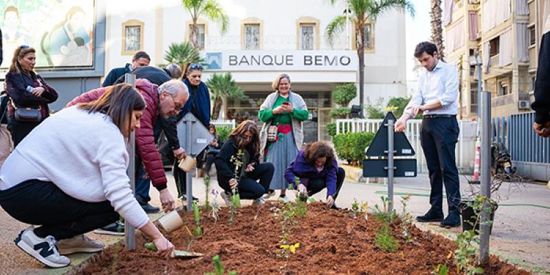 في مبادرة بيئية فريدة ومتكاملة شكّلت واحةً للتنوّع البيولوجي الحضري في قلب العاصمة، قام بنك بيمو بتحويل جزءٍ من الموقف التابع لمقرّه الرئيسي في بيروت إلى غابة مصغّرة (“Mini-forest”)،. وقد أُقيم المشروع على مساحة كانت مخصّصة سابقًا لوقوف السيارات، حيث تم إدخال أكثر من 60 نوعًا نباتيًا مختلفًا، مما أتاح تعزيز الكثافة الخضراء وتشكيل نظام بيئي مصغّر أخذ يتطوّر تدريجيًا.
