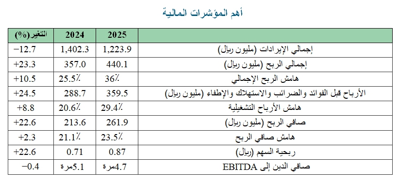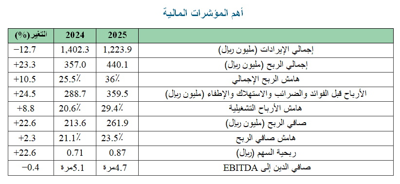 فقد بلغ صافي الربح العائد إلى مساهمي الشركة نحو 261.9 مليون ريال سعودي في العام 2025، مسجلاً نمواً نسبته 22.6 في المئة مقارنة مع العام السابق، كما ارتفعت الأرباح قبل الفوائد والضرائب والاستهلاك والإطفاء إلى 359.5 مليون ريال، بزيادة قدرها 24.5 في المئة على أساس سنوي، وهو ما يعكس تحسناً ملموساً في كفاءة العمليات التشغيلية للشركة.