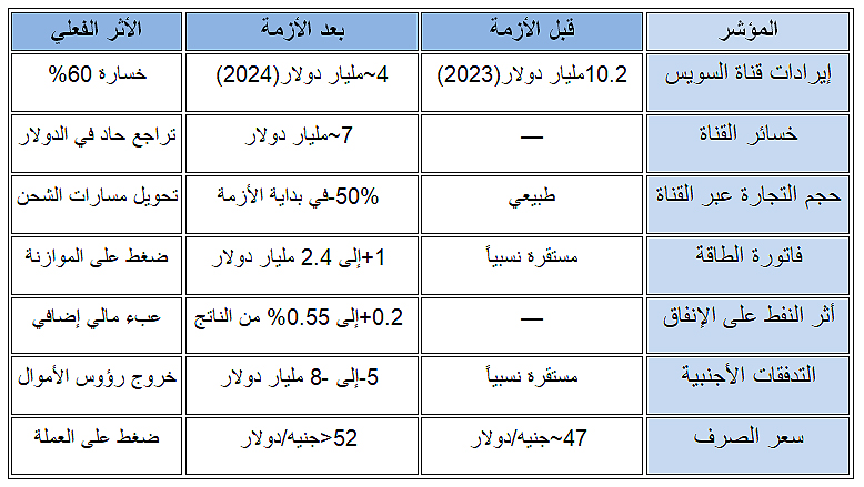 إذا كان التقرير يرسم مسارًا نظريًا للاستقرار، فإن المعطيات الفعلية منذ اندلاع الحرب تكشف أن الاقتصاد المصري دخل بالفعل مرحلة ضغط ملموس، يمكن تتبّعها عبر قنوات واضحة تبدأ من قناة السويس وتمتد إلى الطاقة والغذاء والتدفقات المالية.