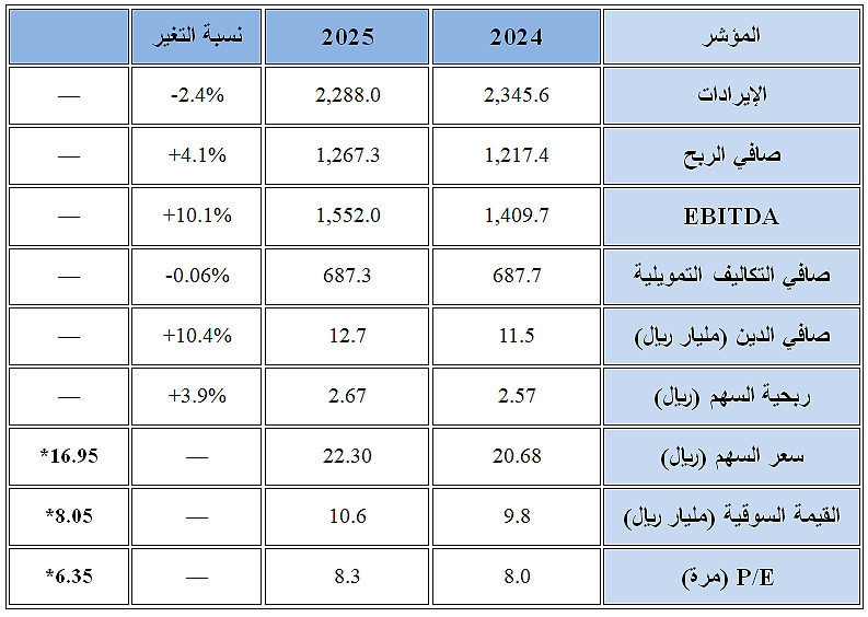 في المقابل، برزت كلفة التمويل كعامل استقرار مهم. إذ بلغت صافي التكاليف التمويلية 687.3 مليون ريال في 2025، مقارنة بـ 687.7 مليون ريال في 2024، ما يعكس قدرة الشركة على إدارة هيكل تمويلها رغم ارتفاع المديونية. فقد ارتفع صافي الدين إلى 12.7 مليار ريال، في وقت قفزت فيه السيولة إلى 4.294 مليار ريال، في مؤشر على مرحلة تمويل مكثف مرتبطة بمشاريع التوسع.