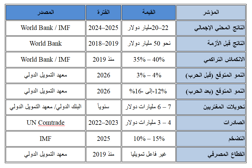 مع اندلاع الحرب الاخيرة، تراجع عامل الاستقرار الذي استند إليه هذا التوازن. وتحولت التوقعات التي أشارت إلى نمو محدود إلى تقديرات بانكماش قد يصل إلى 12–16 في المئة في 2026، وفق تقرير معهد التمويل الدولي. يعكس هذا التحول انقلاباً حاداً في اتجاه الاقتصاد، ويضع النشاط الاقتصادي تحت ضغط مباشر.