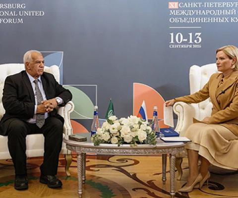 كتبت:هالة ياقوتاستقبلت وزيرة الثقافة بروسيا الاتحادية السيدة اولغا ليوبيموفا وفد جامعة الدول العربية برئاسة الأمين العام المساعد السفير د. حسين الهنداوي وبحث الجانبان سبل تعزيز العلاقات الثقافية العربية الروسية ودراسة الخطوات القادمة لانشاء المركز