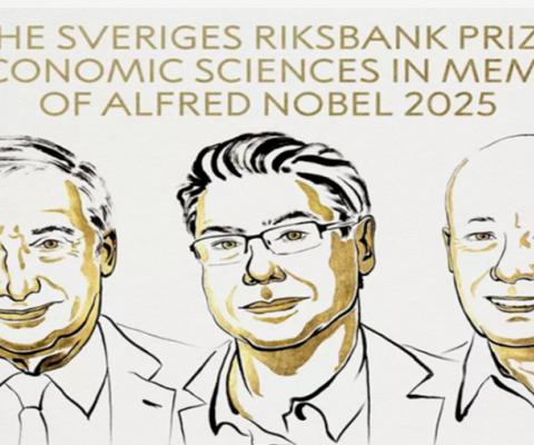 أعلنت الأكاديمية الملكية السويدية للعلوم في ستوكهولم اليوم منح جائزة نوبل في العلوم الاقتصادية لكل من البروفيسور جويل موكير، والبروفيسور فيليب أغيون، والبروفيسور بيتر هويت. ويأتي ذلك تقديرا لإسهاماتهم في تفسير دور الابتكار والتقدم التكنولوجي في